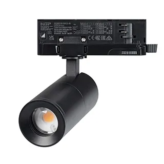 Светильник для треков/шин 4 провода с управлением DALI, Мощность 12Вт. Цвет свечения ДНЕВНОЙ 4000K, световой поток 721 лм, 65 лм/Вт, регулируемый угол 8-80°, CRI>90. Корпус круглый, алюминий, цвет чёрный, IP20. Размеры L × W × H (Ø) 192 х 144 х Ø55 мм. Входное напряжение AC220-240V. Монтаж на трек 3-фазный. Драйвер 10-42В (300-800 мА), 50/60Гц, максимальная мощность 42W