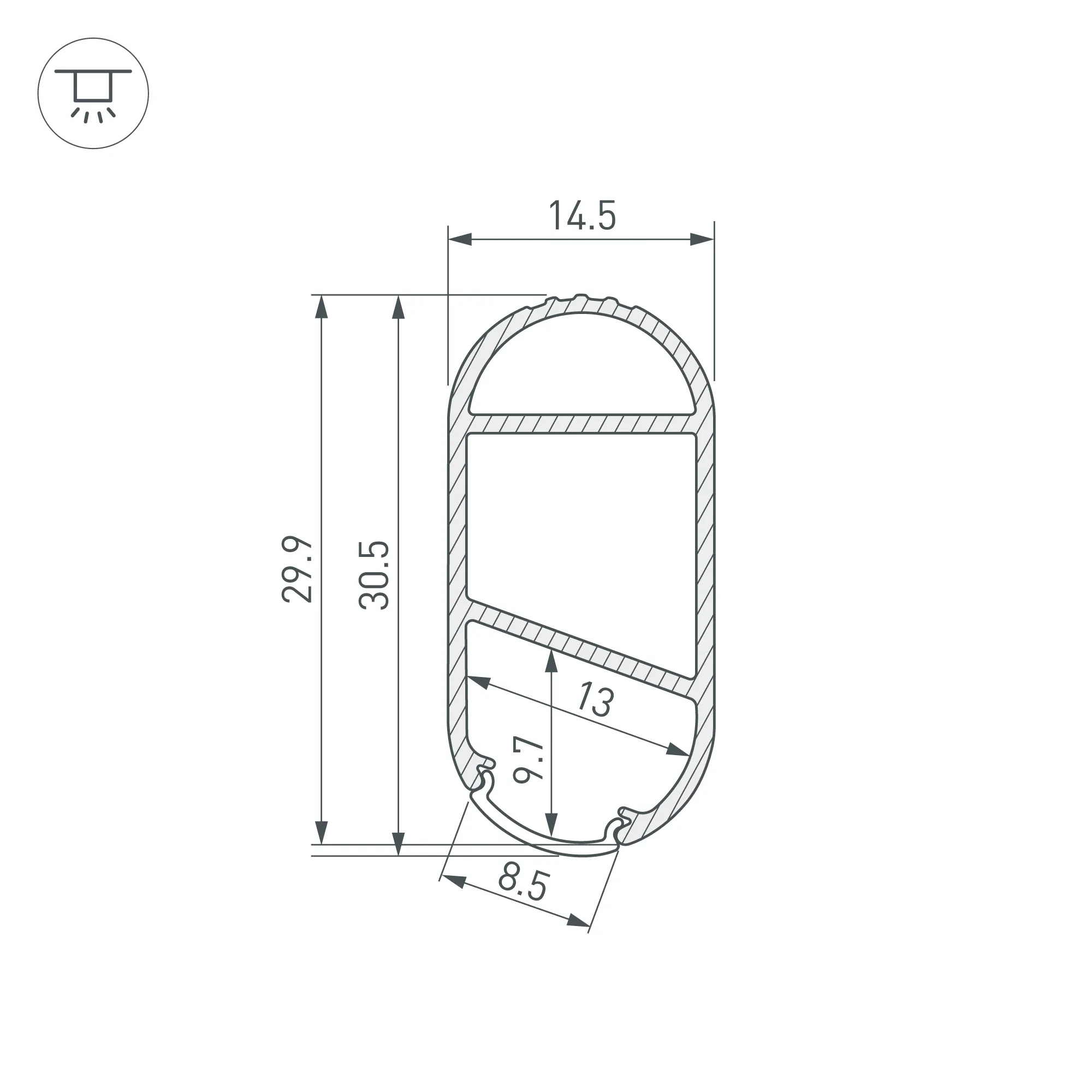 Алюминиевый анодированный профиль для светодиодных лент и линеек. Габаритные размеры (L×W×H): 2000x14,5x29,9 мм. Ширина площадки для ленты 13 мм. Экраны, заглушки и другие аксессуары приобретаются отдельно. Цена за 1 метр.