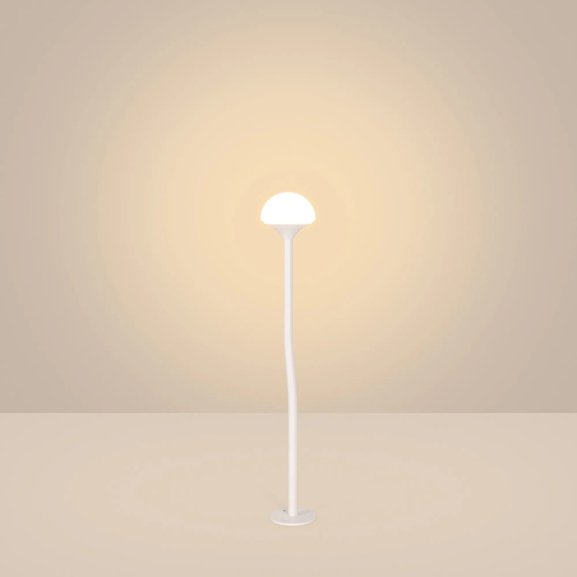 Уличный декоративный светодиодный светильник. Мощность 1 Вт, св. поток 111 лм, 122 лм/Вт, теплый 3000 K, CRI>80, угол излучения 85° напряжение питания 24 В. Белый корпус из алюминия, прозрачный матовый рассеиватель из PMMA. Степень защиты IP65. Размер: диаметр 58 мм, высота 355 мм, высота углубления 155 мм. Монтаж в грунт с помощью основания пика (входит в комплект поставки). Драйвер приобретается отдельно.