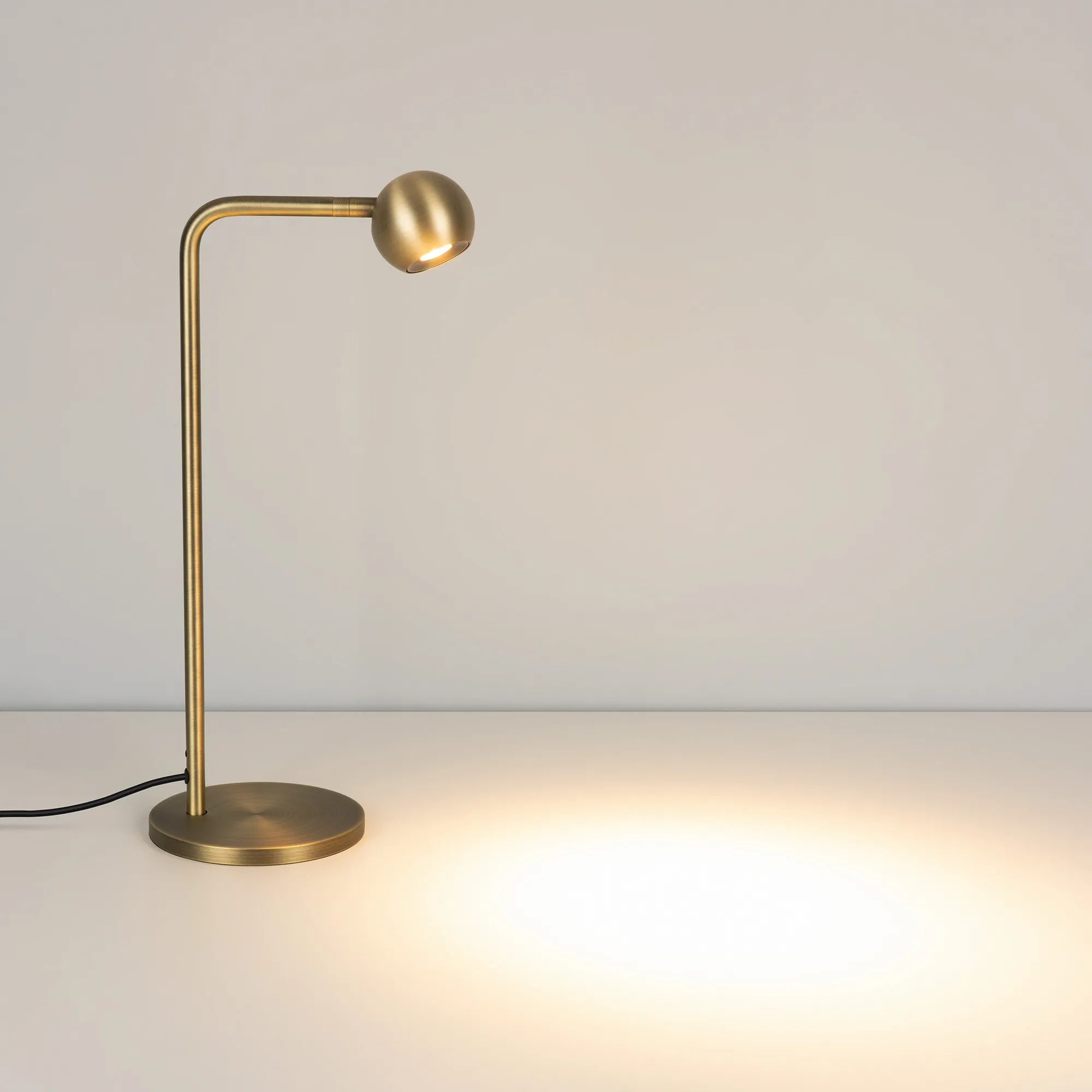 Декоративный настольный светильник. Мощность 6 Вт, св. поток 540 лм, 90 лм/Вт, теплый 3000К, CRI>90, угол 30°, напряжение питания 230 В.Бронзовый корпус из алюминия (основание, ножка, светоизлучаль в форме шара), степень защиты IP20. Размер основания Ø140×11 мм, размер ножки Ø12,5×430х120 мм, размер светоизлучателя Ø65×55,5 мм. Длина провода 1580 мм, питание от сети 220-240V., пульсация <1%