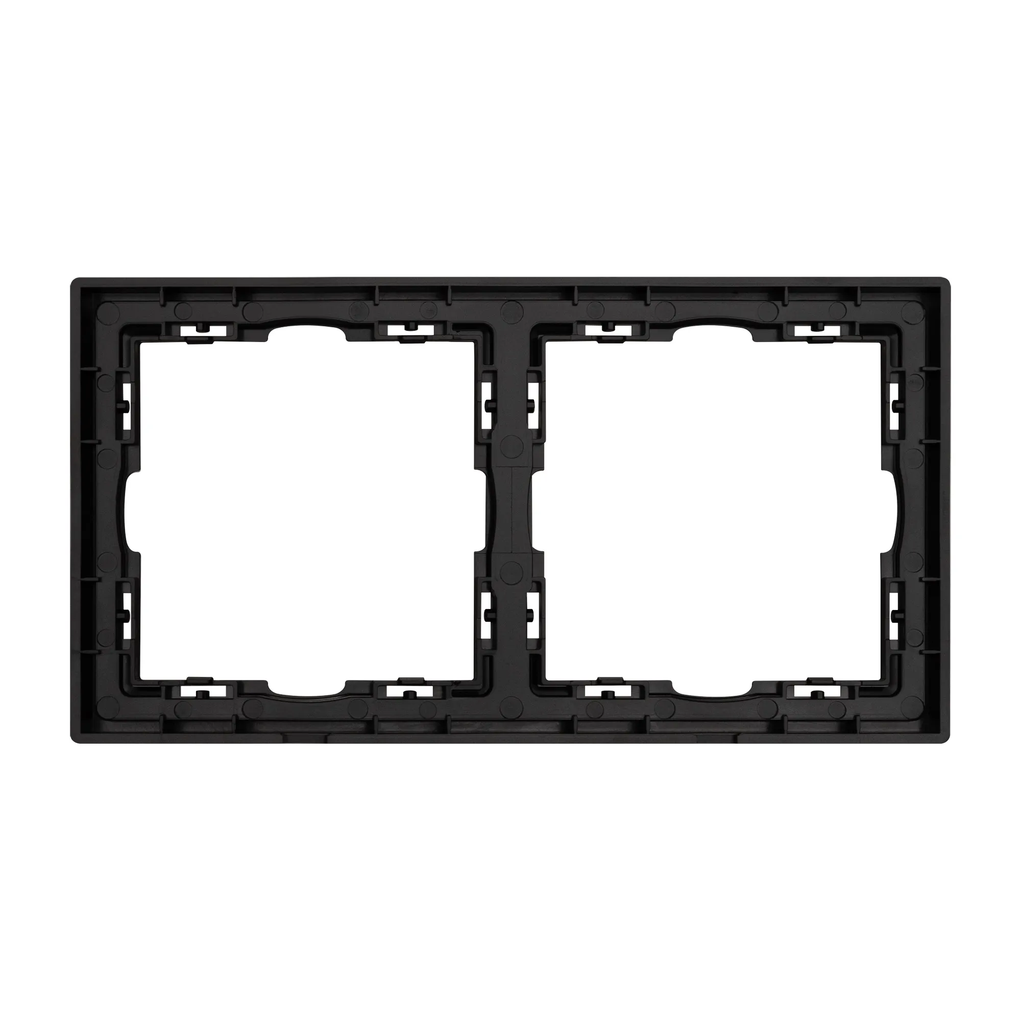 Рамка пластиковая на 2 поста, под встраиваемый механизм. Цвет - серый базальт, с Soft-Touch покрытием. Среднего уровня герметичности IP20. Ориентация монтажа горизонтальная.