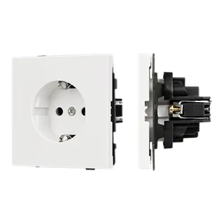 Механизм розетки с заземлением на 1 пост. Цвет - белый кварц, с Soft-Touch покрытием. Без фронтальной рамки. Уровень пылевлагозащиты IP20. Розетка устанавливается в стандартный подрозетник круглого сечения диаметром 60мм.