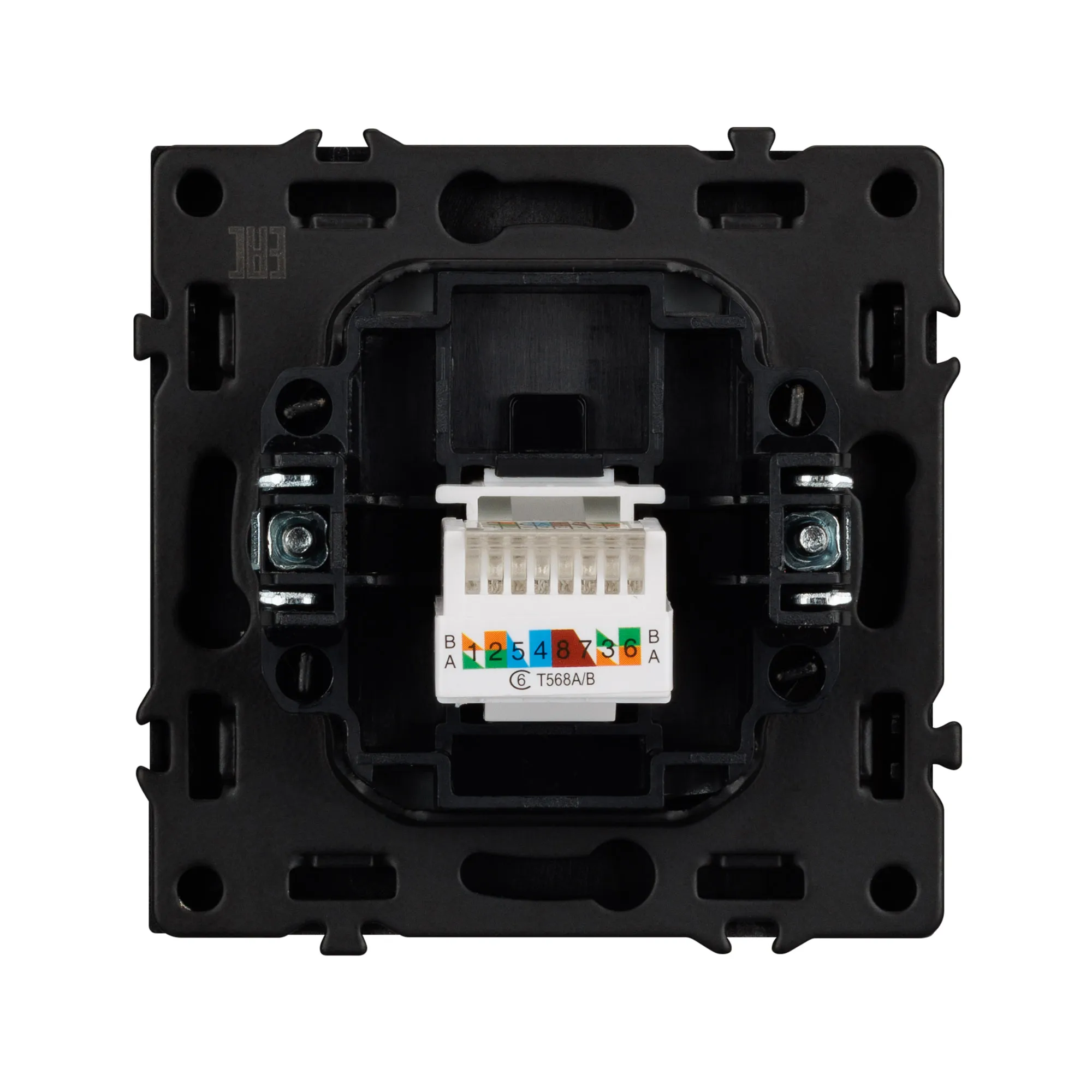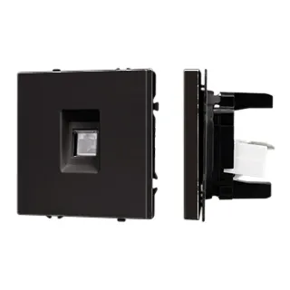 Механизм компьютерной розетки на 1 пост 6-й категории. Цвет - черный оникс, с Soft-Touch покрытием. Без фронтальной рамки. Уровень пылевлагозащиты IP20. Тип подключаемого разъема - RJ45. Розетка устанавливается в стандартный подрозетник круглого сечения диаметром 60мм.