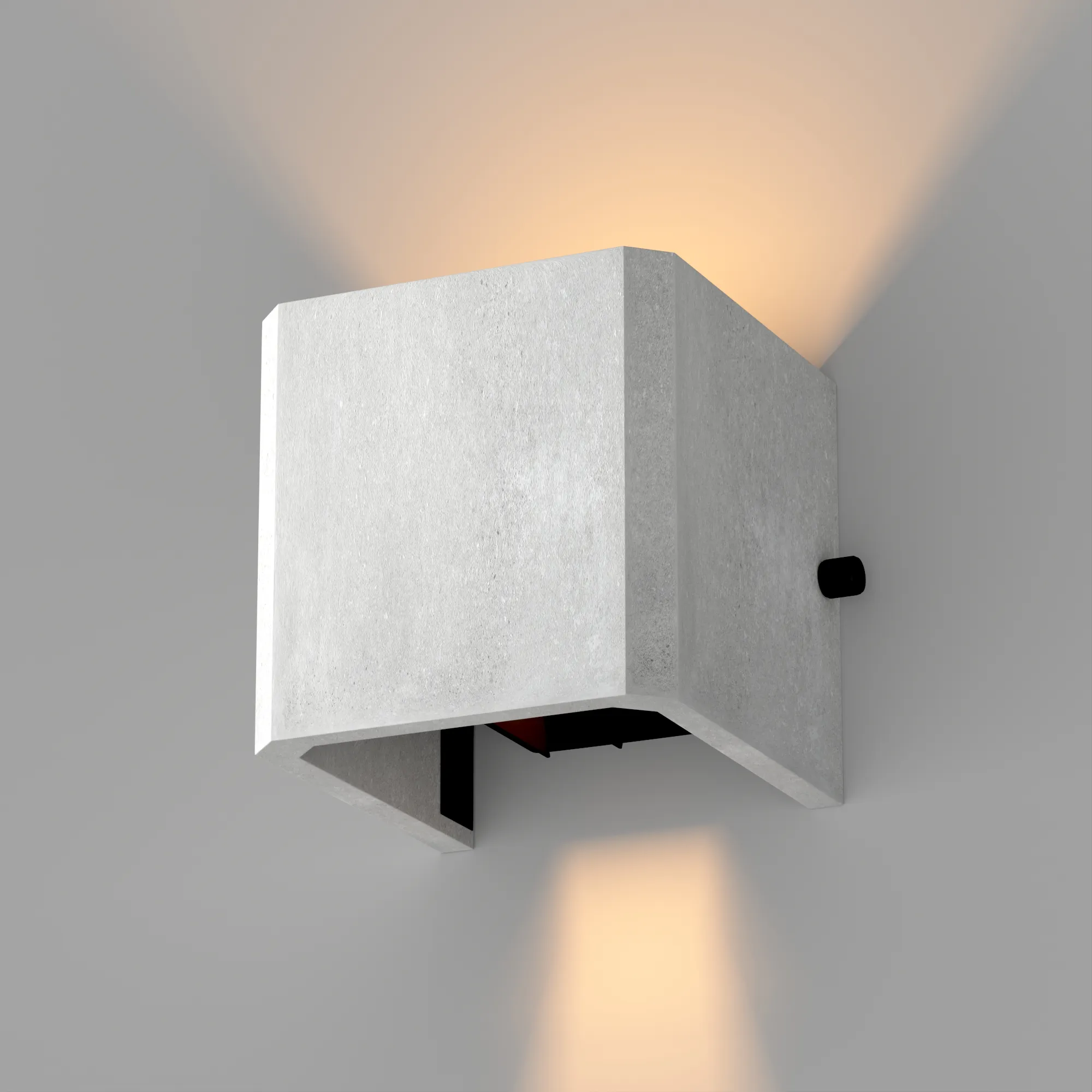 Накладной настенный светильник, свечение вверх/вниз. Мощность 6 Вт, св. поток 286 лм, 49 лм/Вт, теплый 3000 K, CRI>90, изменяемый угол освещения 0°-80°, напряжение питания 230 В. Фигурный корпус из бетона белого цвета и алюминия, экран ударопрочный PC, степень защиты IP65. Размер: длина 120 мм, ширина 120 мм, высота 120 мм. Монтаж накладной. Драйвер встроенный, пульсация <0.5%.