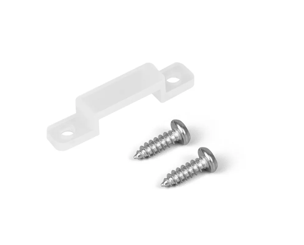 Силиконовый держатель для монтажа герметичных лент шириной до 15 мм. Цвет - белый матовый. Винты для установки в комплекте. Силиконовый держатель обеспечивает надежную фиксацию ленты без использования двустороннего скотча. Упаковка 100 шт. Цена за 1 шт.