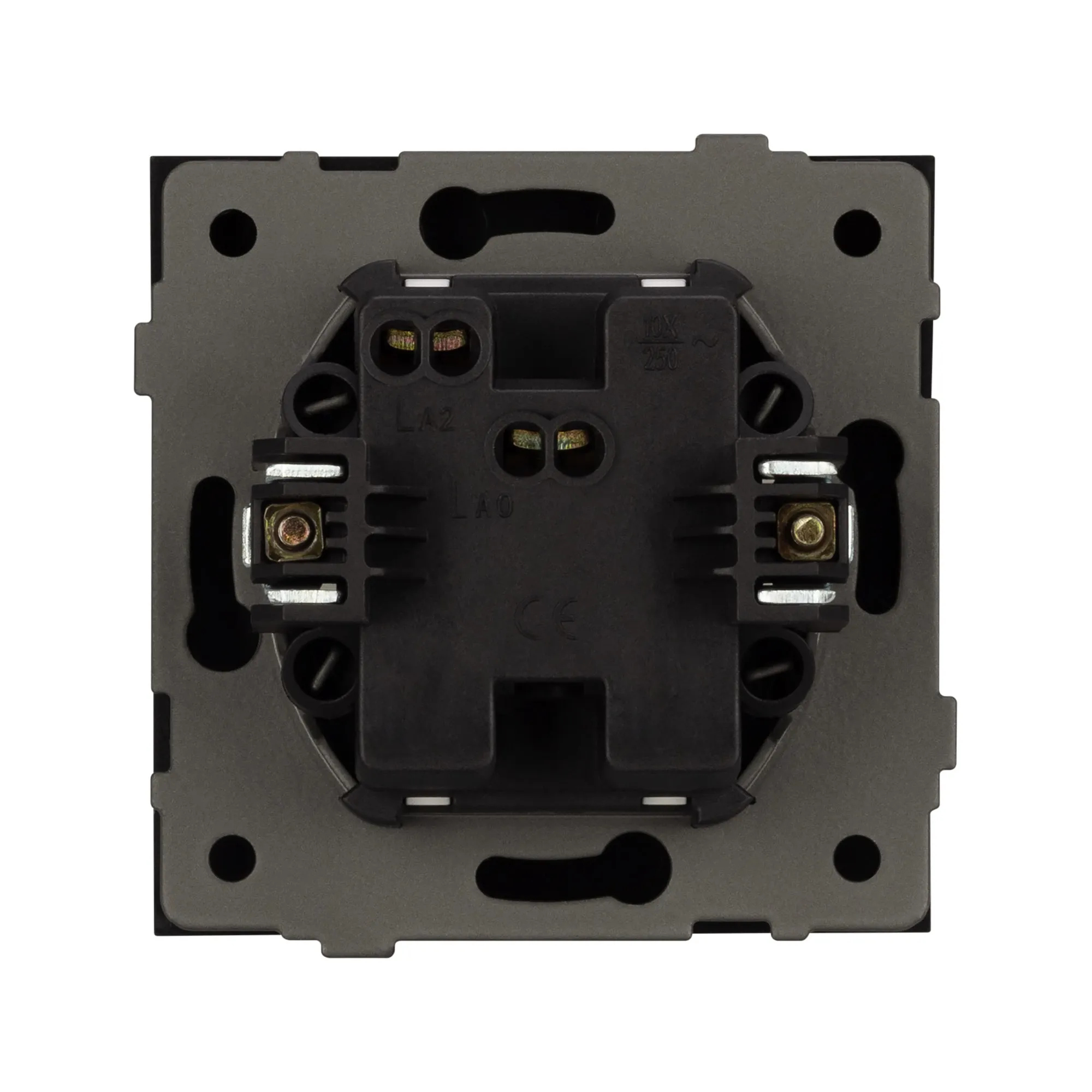 Механизм выключателя света клавишный на 1 пост 1 клавиша (непроходной). Цвет - черный. Без фронтальной рамки. Уровень пылевлагозащиты IP20. Выключатель устанавливается в стандартный подрозетник круглого сечения диаметром 60мм.