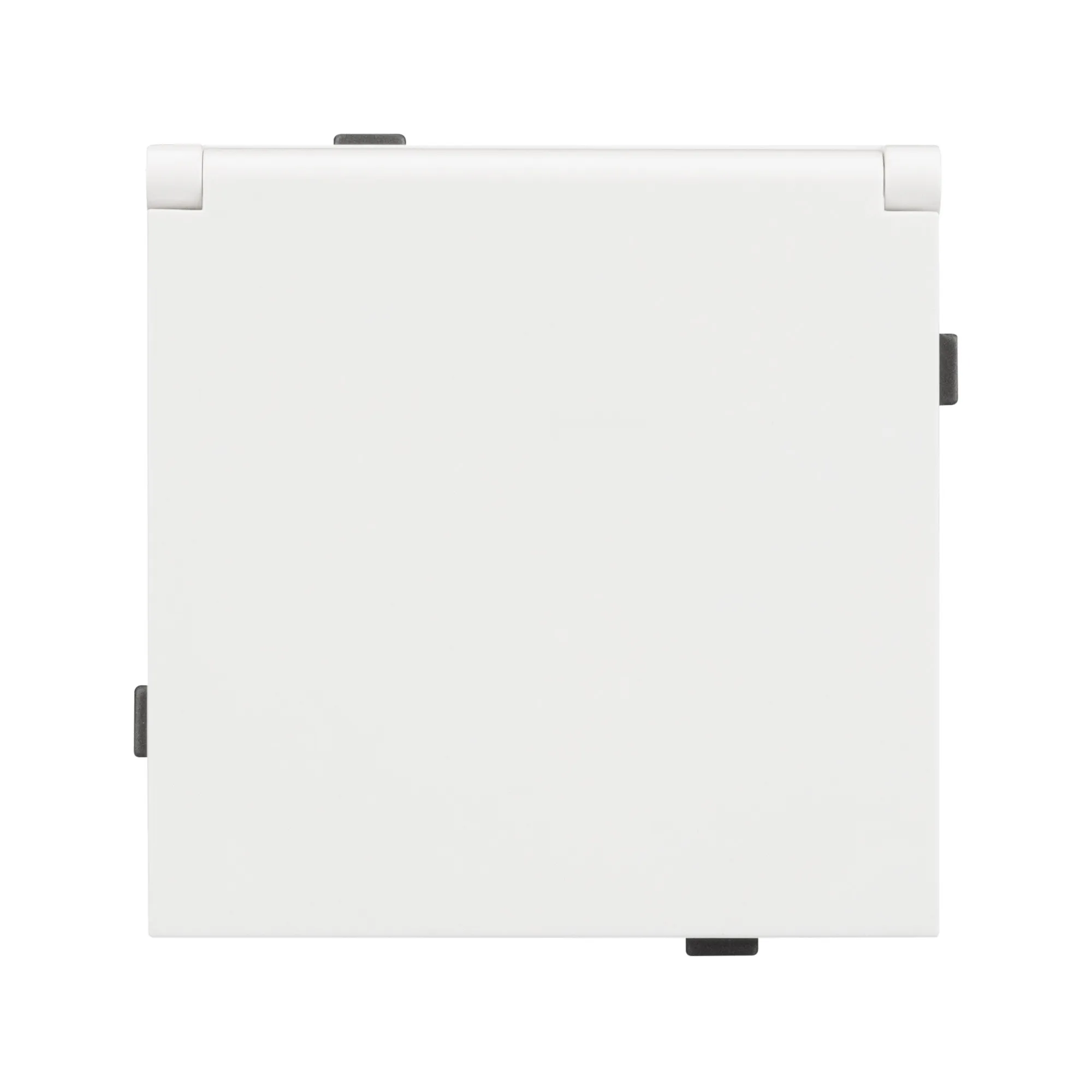 Механизм розетки с заземлением и влагозащитной крышкой на 1 пост. Цвет - матовый белый, с Soft-Touch покрытием. Без фронтальной рамки. Уровень пылевлагозащиты IP44. Розетка устанавливается в стандартный подрозетник круглого сечения диаметром 60мм.