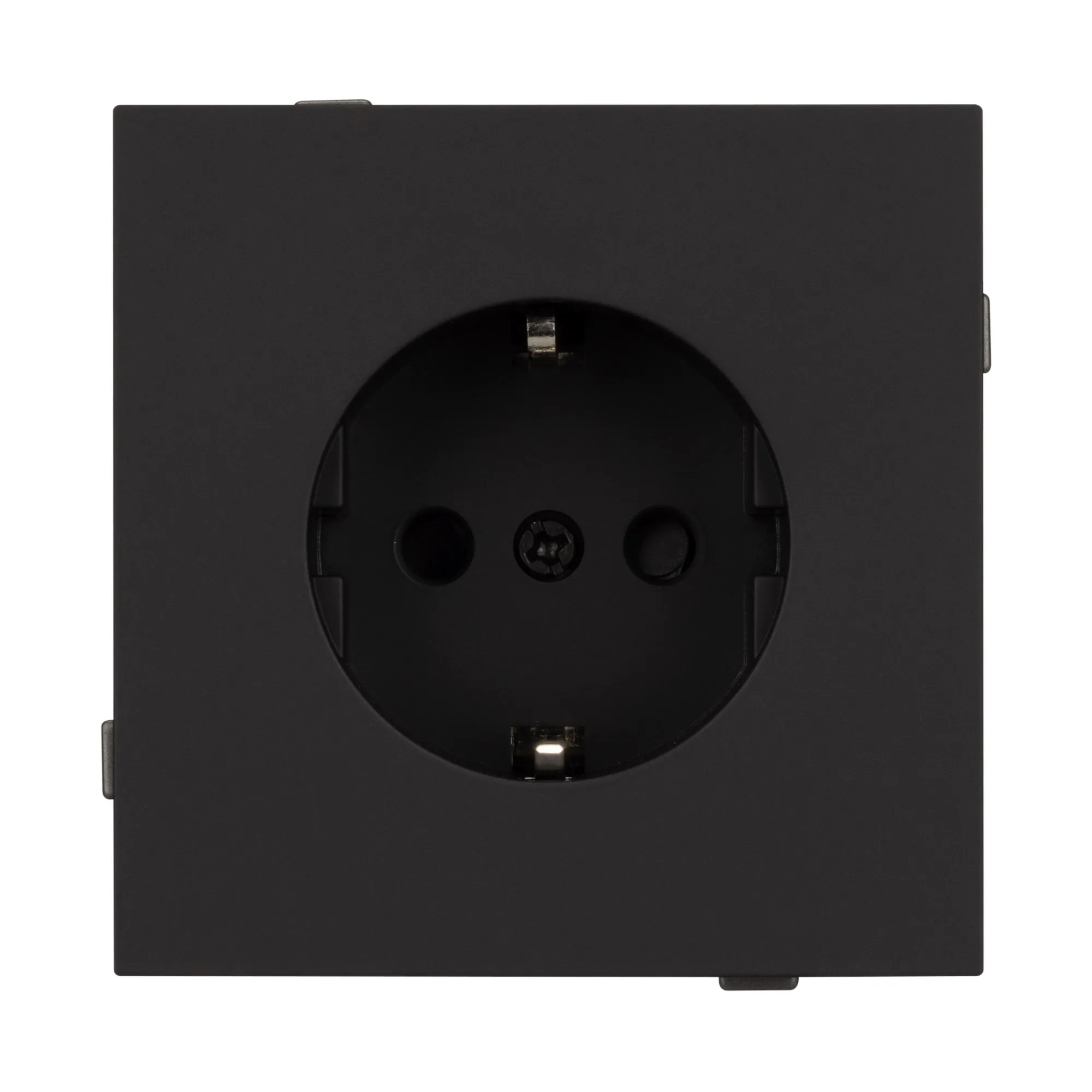 Механизм розетки с заземлением на 1 пост. Цвет - матовый черный, с Soft-Touch покрытием. Без фронтальной рамки. Уровень пылевлагозащиты IP20. Розетка устанавливается в стандартный подрозетник круглого сечения диаметром 60мм.