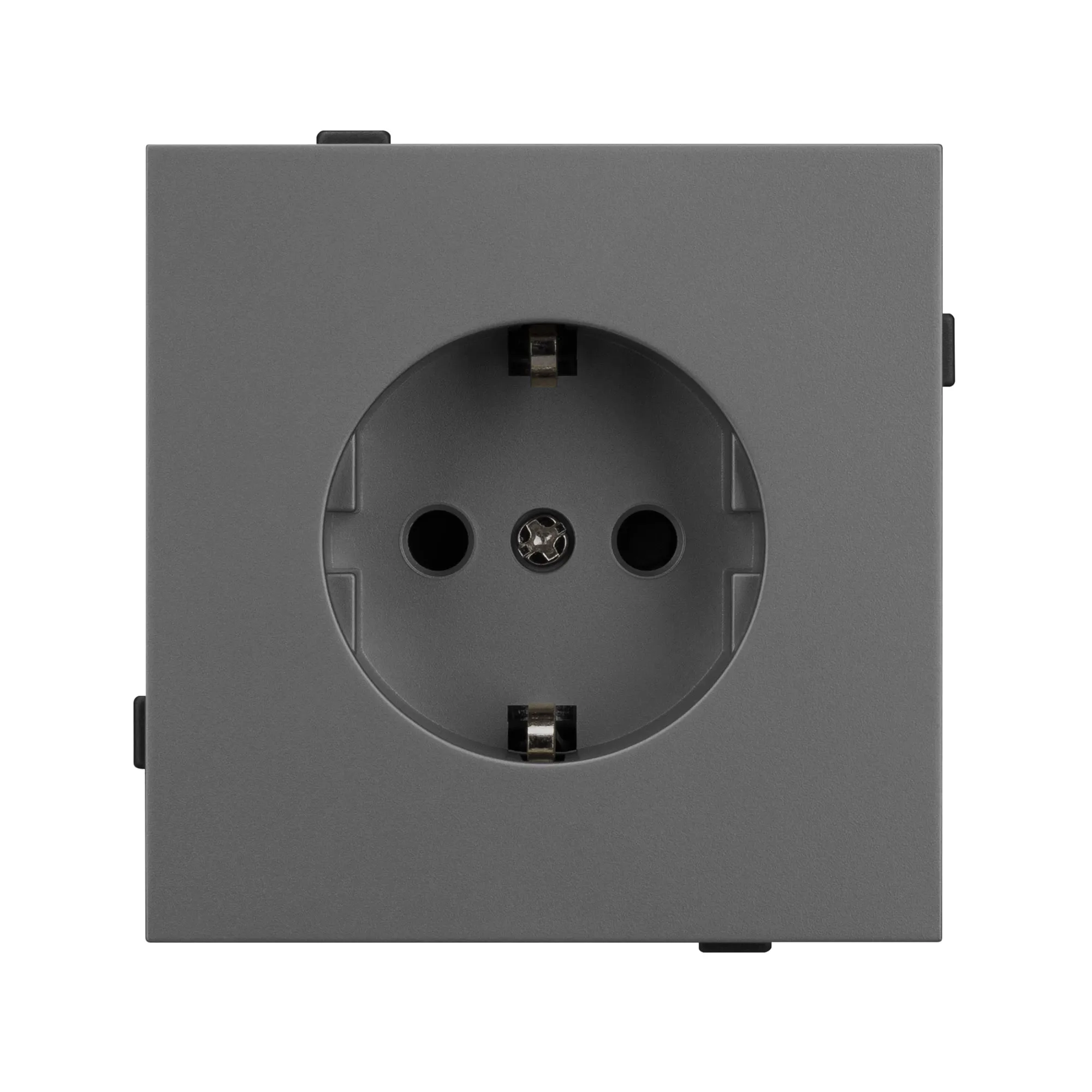 Механизм розетки с заземлением на 1 пост. Цвет - матовый графитовый, с Soft-Touch покрытием. Без фронтальной рамки. Уровень пылевлагозащиты IP20. Розетка устанавливается в стандартный подрозетник круглого сечения диаметром 60мм.