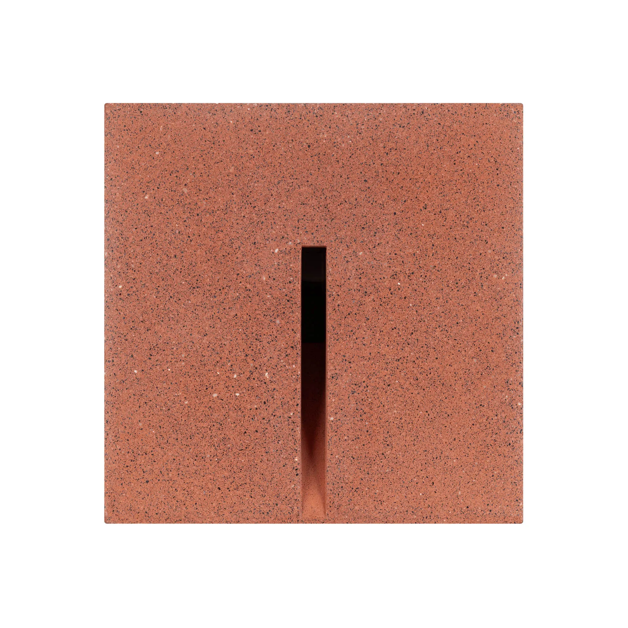 Светодиодный встраиваемый квадратный светильник для стен, лестниц. Мощность 3Вт, световой поток 32 лм, теплый 3000К, угол 25x45°, CRI>80, напряжение 230 В. Квадратный корпус из бетона темно-красного цвета и алюминия. Степень защиты IP65. Питание AC230V, мощность 3Вт. Размеры LхWхH 100х100x76 мм. Драйвер встроенный, пульсация <0.5%.