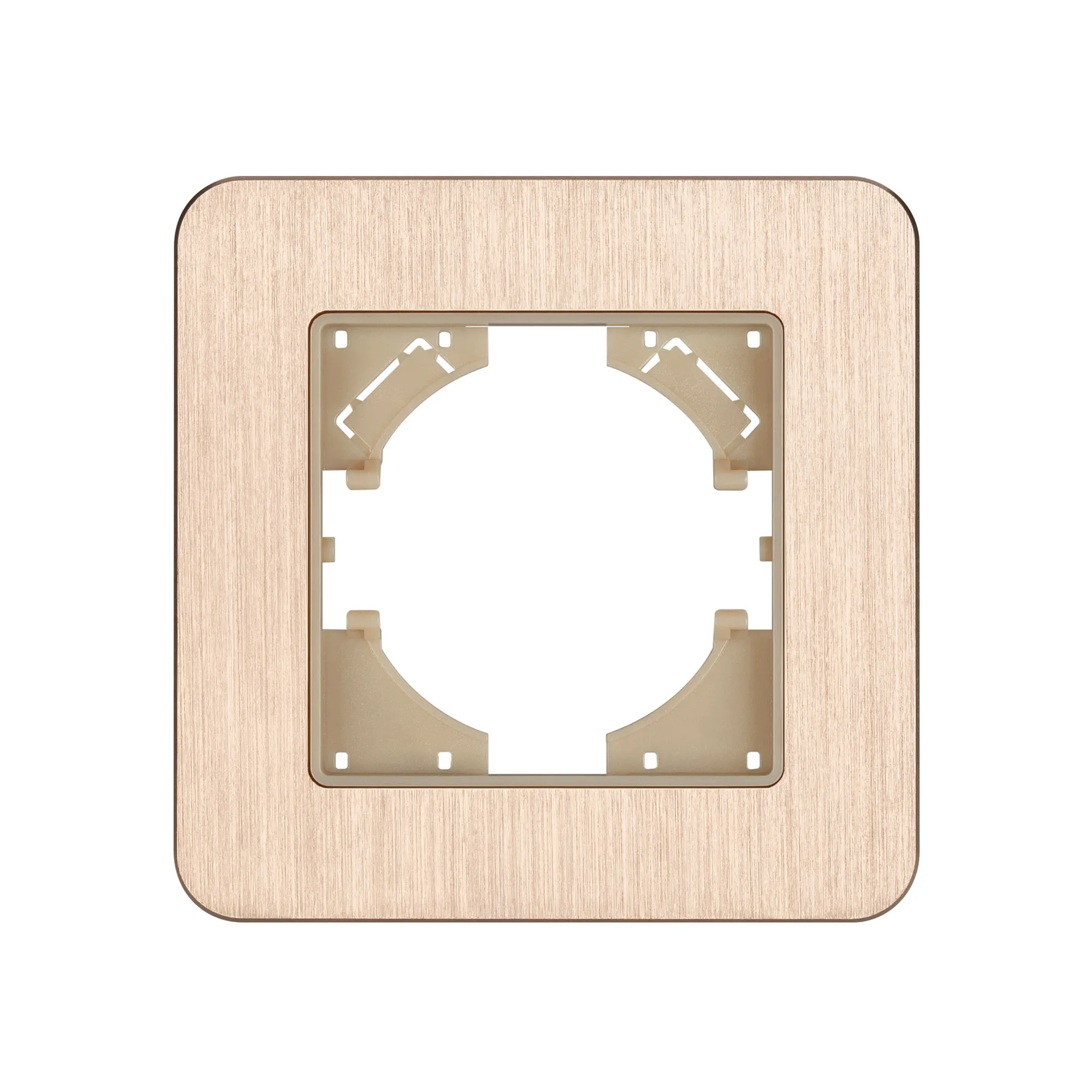 Рамка алюминиевая на 1 пост, под встраиваемый механизм. Цвет - золотой. Уровень герметичности IP20. Ориентация монтажа - горизонтальная (основным ориентиром служат посадочные выступы для накладки механизма).