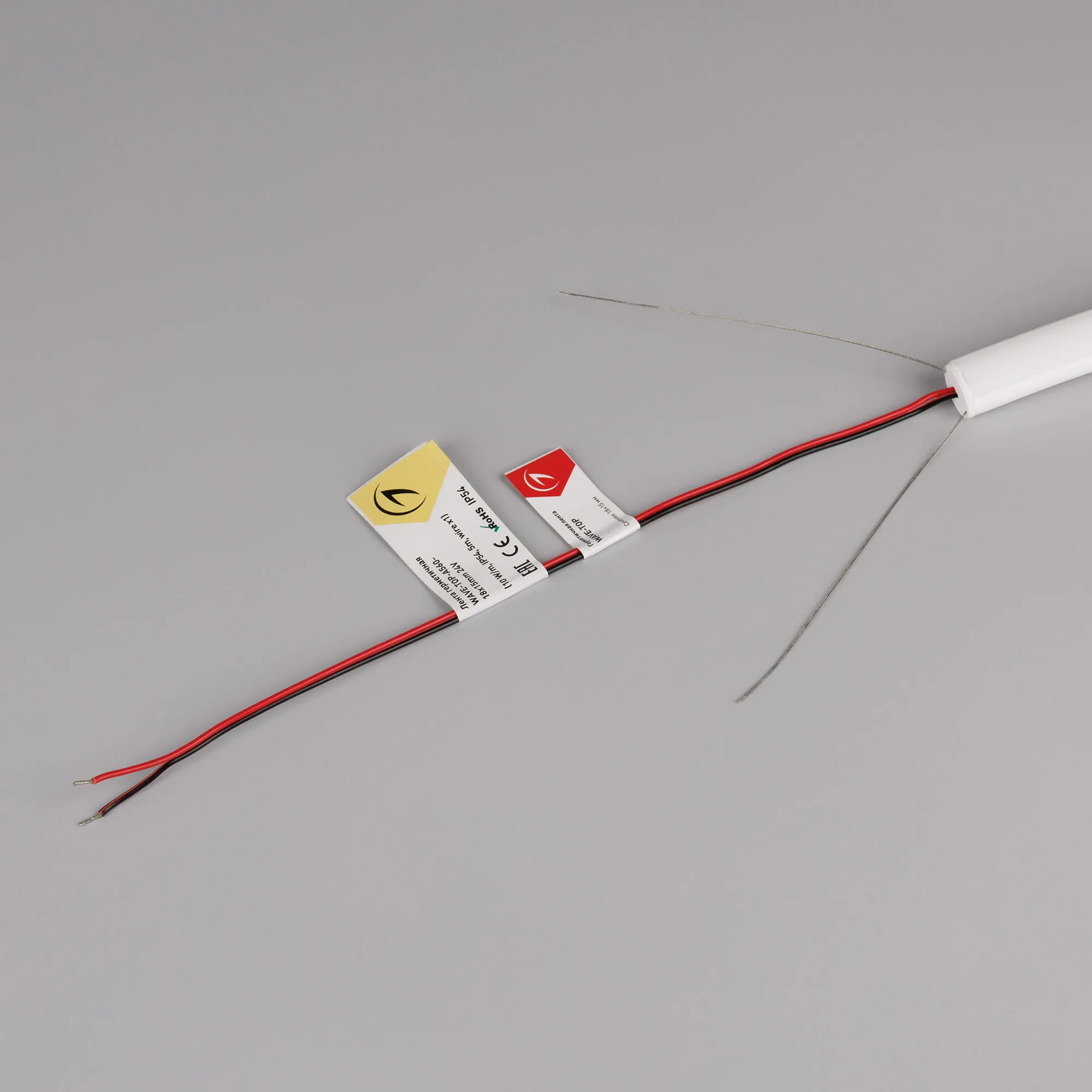 Гибкая герметичная лента (неон серии WAVE), сечение 18×15 мм с тросом-натяжителем. Светодиоды SMD2835 560 шт/м. Цвет свечения ТЕПЛЫЙ БЕЛЫЙ (2700 К), индекс цветопередачи CRI>90, световой поток 460 лм/м, угол излучения 360°. Мощность 10 Вт/м, питание 24 В. Класс пылевлагозащиты IP54. Размеры 5000×18×15 мм. Мин. отрезок 25 мм. Изгиб согласно метки на корпусе, минимальный радиус изгиба 150 мм. Кабель питания длиной 500 мм, вывод с одной стороны вдоль линии сечения неона. Катушка 5 м. Цена за 1 м. Гарантия 3 года.