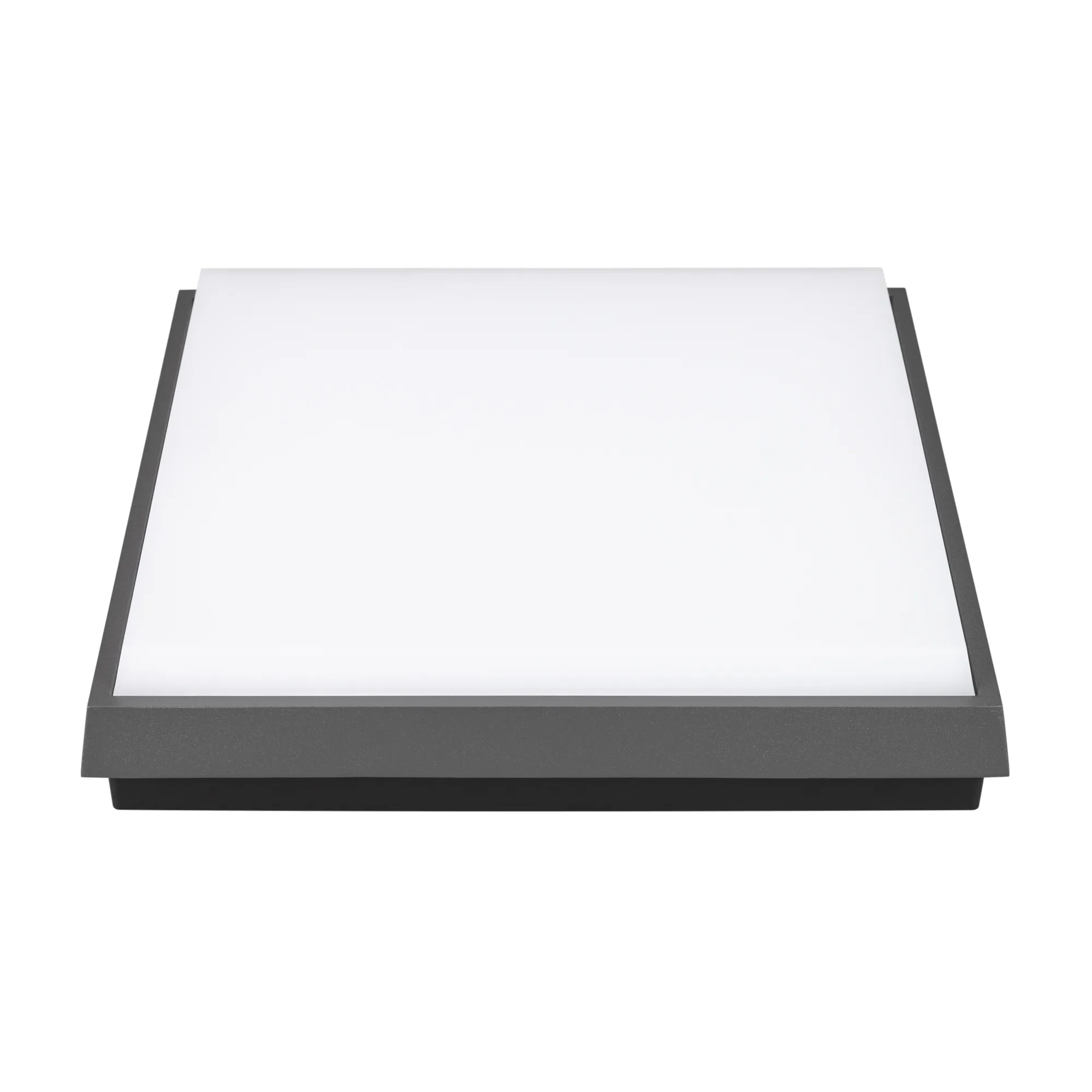 Накладной светильник 25Вт, серый алюминиевый корпус, матовый рассеиватель из поликарбоната. Цвет ТЕПЛЫЙ БЕЛЫЙ 3000K, св.поток 2540лм, CRI(Ra)>80, угол 110°. Размер 240x240x45мм. IP54. Питание AC220-240V, 26Вт, встроенный драйвер.