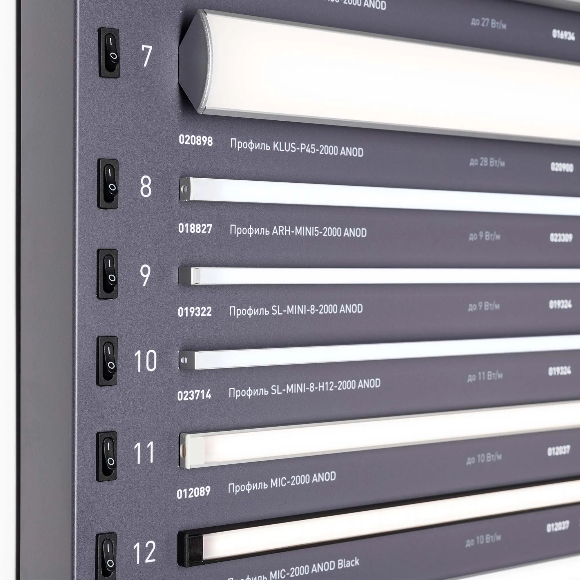 Стенд Алюминиевые Профили Накладные со светодиодной лентой.
