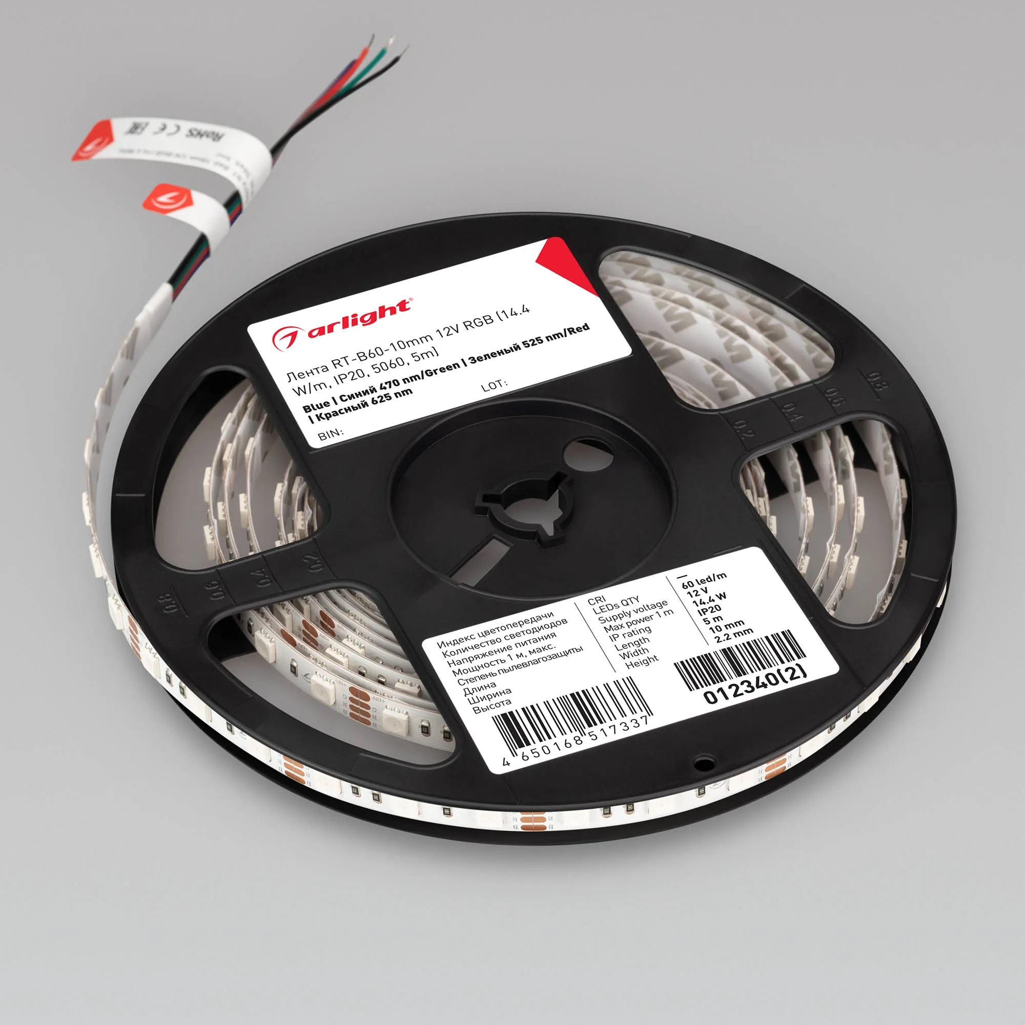 Лента RT-B60-10mm 12V RGB (14.4 W/m, IP20, 5060, 5m) (Arlight, Открытый)