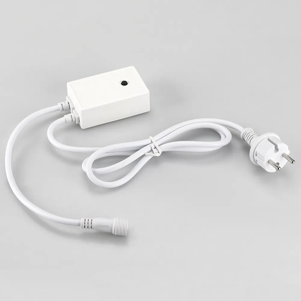 RGB контроллер со встроенными режимами для управления светодиодными гирляндами серии CLASSIC (IP65) и синхронизации их работы. Динамическая смена режимов свечения гирлянды. Напряжение питания AC 230V, мощность нагрузки 250W, ток нагрузки 3x0.36A. Поддерживает управление до 1600 светодиодов. Степень защиты от воздействия окружающей среды IP44. Габариты 55.7x88.2mm