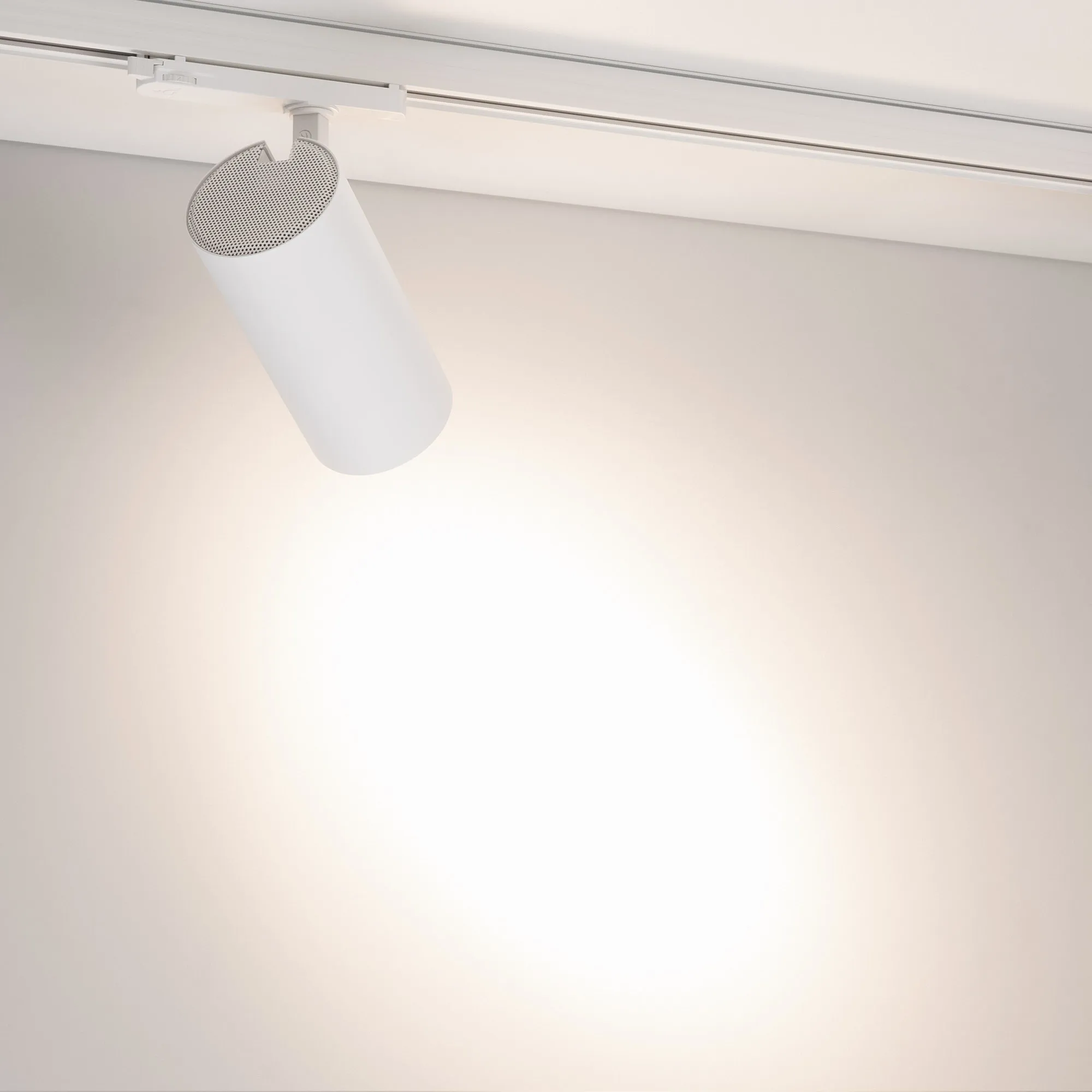 Светильник для треков/шин 4 провода. Мощность 30 Вт, св. поток без решетки honeycomb 3000 лм, 100 лм/Вт, с решеткой honeycomb 1980 лм, 66 лм/Вт, дневной 4000 K, CRI>90, угол 15°, напряжение питания 230 В. Белый круглый корпус из алюминия, материал линзы PMMA, степень защиты IP20. Антибликовая решетка honeycomb в комплекте. Размер: диаметр 90 мм, длина световой части 141 мм. Монтаж на трек 3-фазный. Драйвер встроенный 24-42 В, 750мА., пульсация <5%