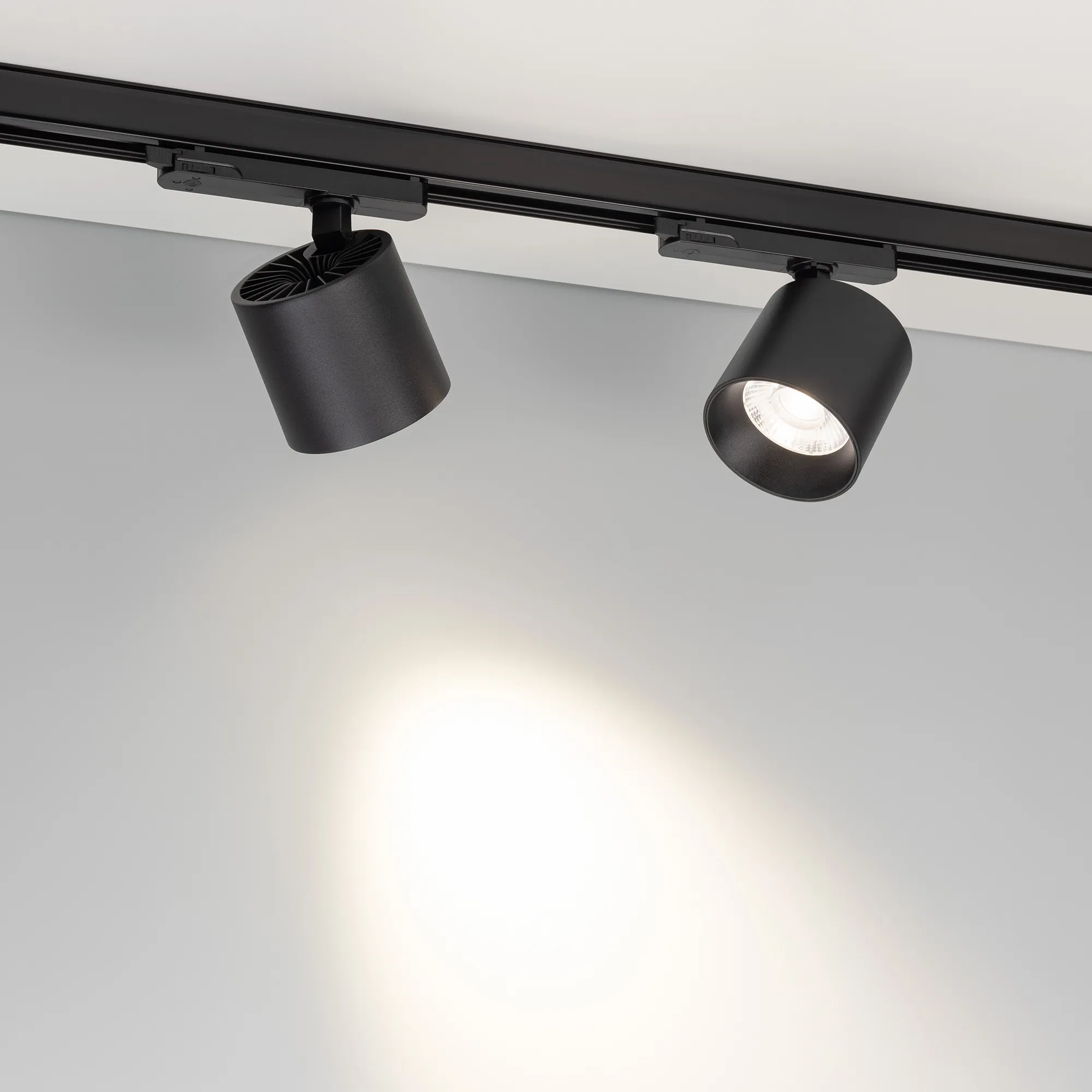Светильник для трехфазных треков, 36 Вт с управлением TRIAC. Цвет свечения ДНЕВНОЙ 4000K, световой поток 3200 лм, угол 50°, CRI>90. Корпус круглый, металл, цвет черный, IP20. Размеры Ø100x93 мм. Входное напряжение AC220-240V. Драйвер встроенный 9-40В (300 - 1050мА), 50/60Гц, максимальная мощность 42 Вт.