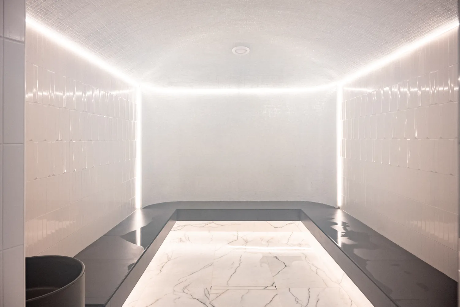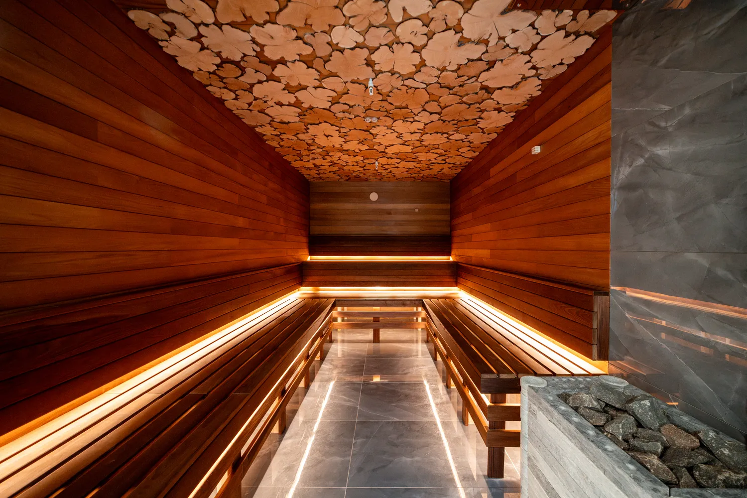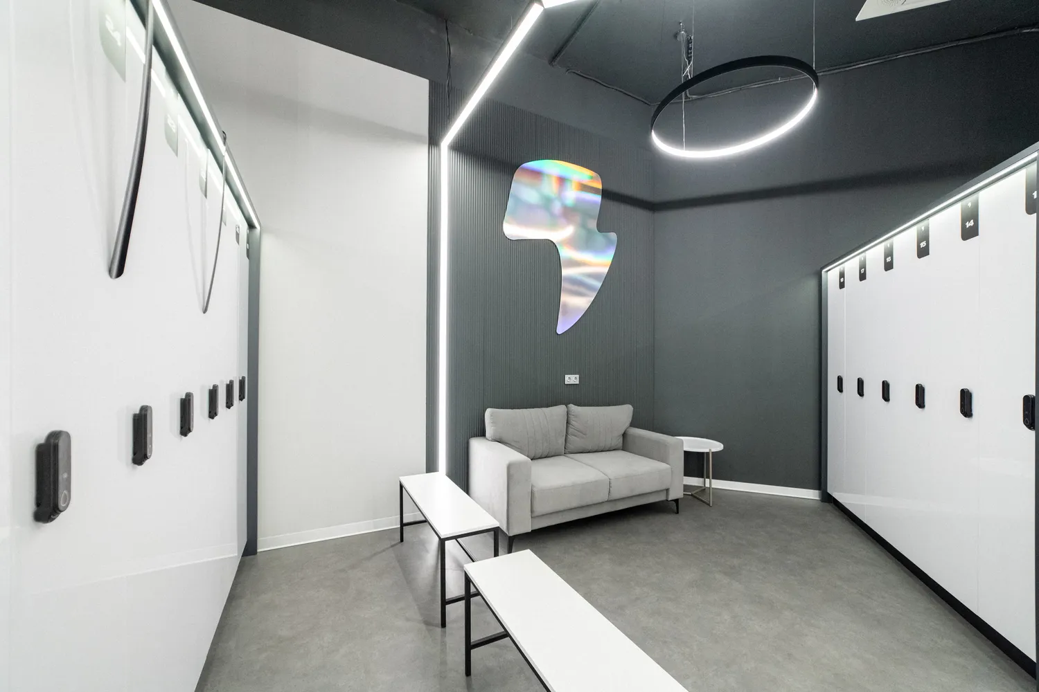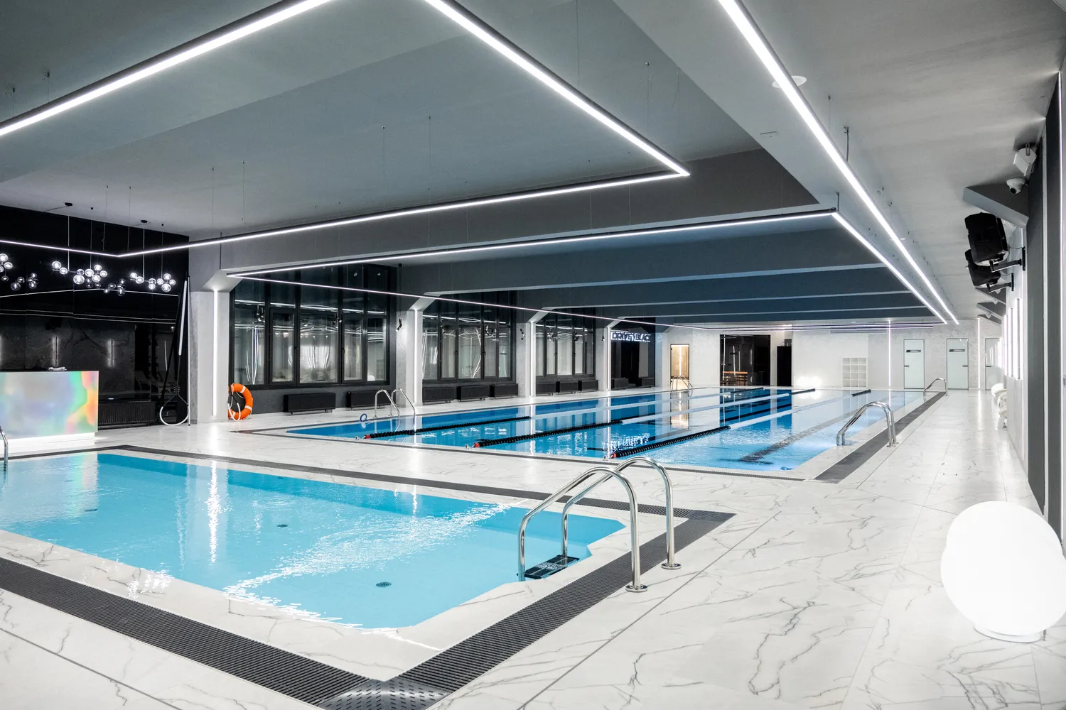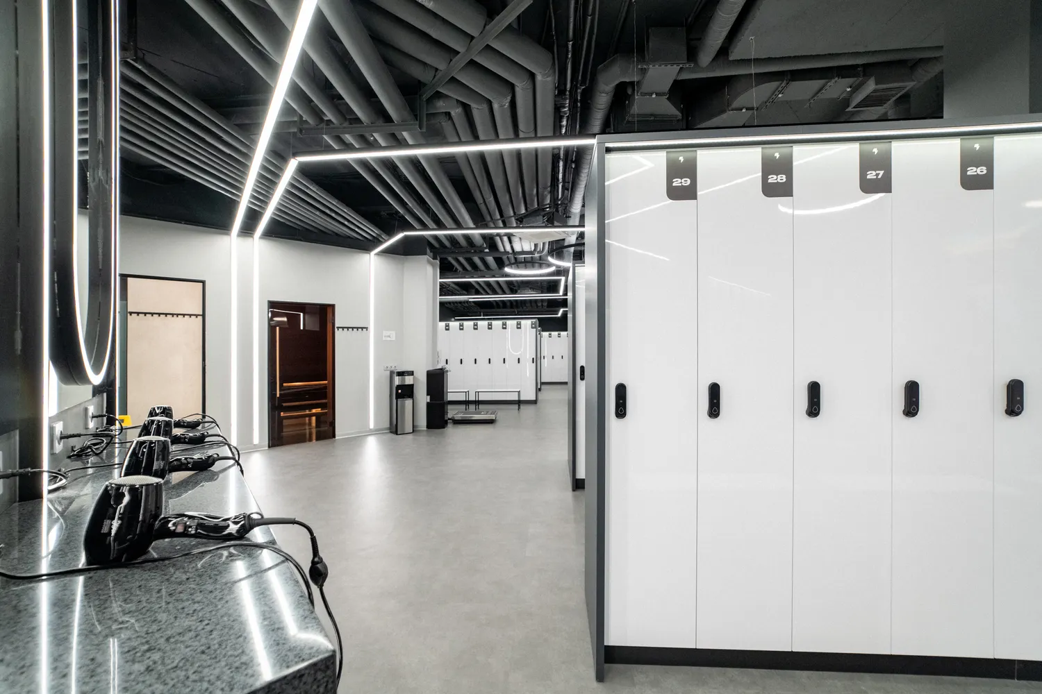 3. Управление освещением: предусмотрели возможность управления освещением в таких помещениях как: SPA-зоны, зал групповых программ, раздевалки. Для этого использовали светорегуляторы и панели управления, чтобы адаптировать уровень освещённости под разные ситуации и время суток. В частности  в  зале групповых программ фитнес-центра диммируемые светильники общий метраж, которых составляет 90 метров, позволяют синхронно регулировать яркость, создают уникальную атмосферу и обеспечивают комфортное освещение для различных видов тренировок.
